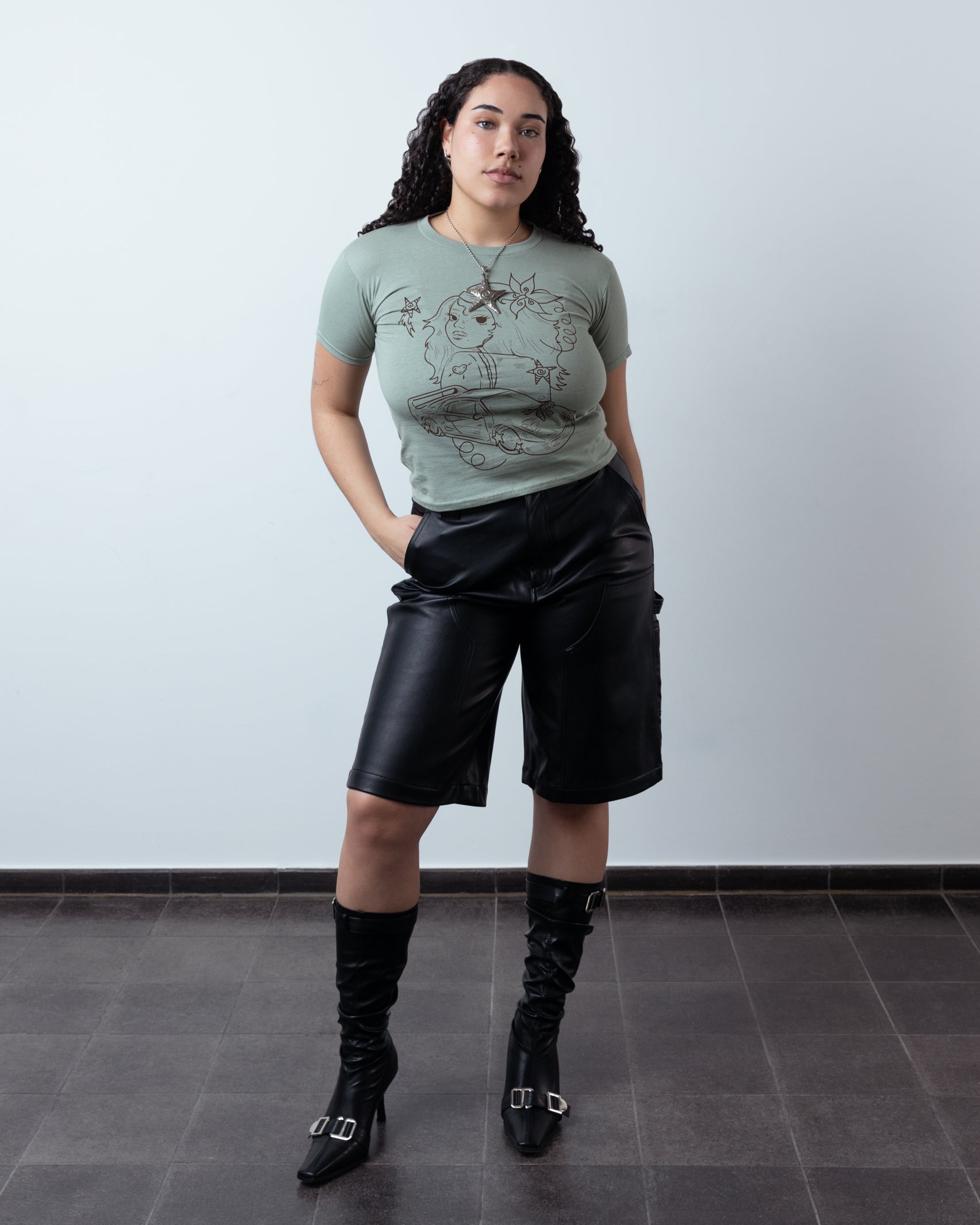 Meet your new go-to statement tee: a soft, fitted baby t-shirt that fuses comfort with street-savvy edge. Designed by Toni Agost and handprinted by Maldonado in Berlin, this piece features an original illustration that blends raw energy and delicate detail – a striking portrait meets a custom-drawn car for a bold, genderless aesthetic.